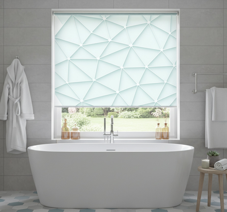 Reference: E9051The Blind blue abstract triangle pattern is a stunning design that beautifully combines vibrant shades of blue with abstract triangular shapes, creating a captivating visual experience. This roller blind not only serves as a functional window covering but also enhances your interior decor by adding a touch of modern artistry. With its easy assembly in 2 clicks, effortless cleaning, and quick disassembly, it is perfect for any home. Furthermore, it protects your room from direct sunlight while providing the necessary privacy when lowered, allowing you to control the ambiance of your space while ensuring security.