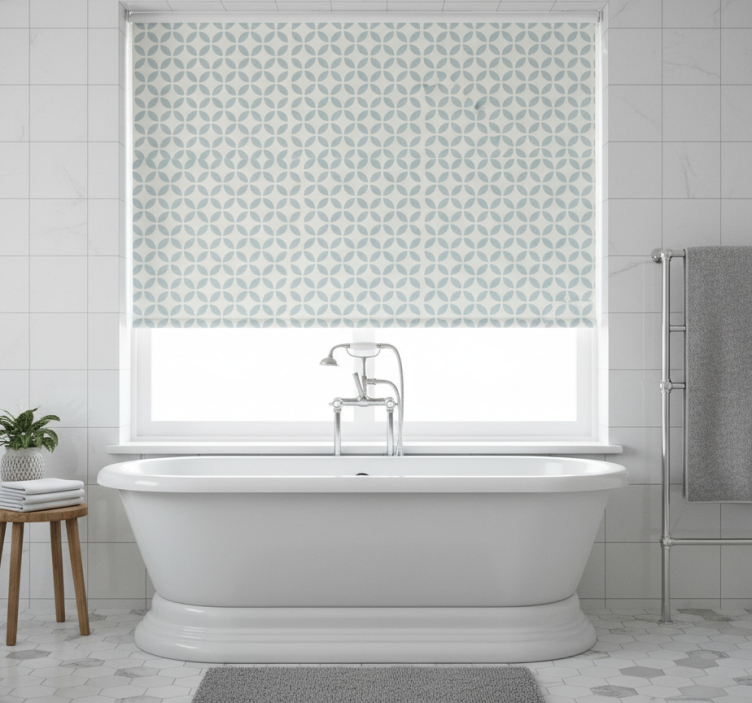 Reference: E8986Introducing our stunning Blind blue circular patterned design, a visual delight that effortlessly combines elegance and functionality. This unique design features a captivating blue color interspersed with intricate circular patterns, making it a perfect addition to any room. With easy assembly in just 2 clicks, a convenient cleaning process, and the ability to regulate room temperature, this roller blind offers both beauty and practicality. Not only does it protect your space from direct sunlight, but it also provides the privacy you desire when lowered, ensuring that your home remains a secure sanctuary.