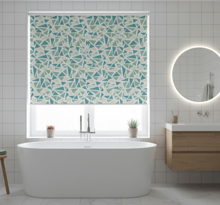 Reference: E9047Introducing the stunning Blind blue vintage green mosaic, a beautiful blend of intricate mosaic patterns that evoke a sense of nostalgia and charm. This roller blind features easy assembly in just two clicks, effortless cleaning, and quick disassembly, making it perfect for those who value both aesthetics and functionality. Additionally, it protects your room from direct sunlight while providing privacy when lowered, creating a comfortable atmosphere in your space.