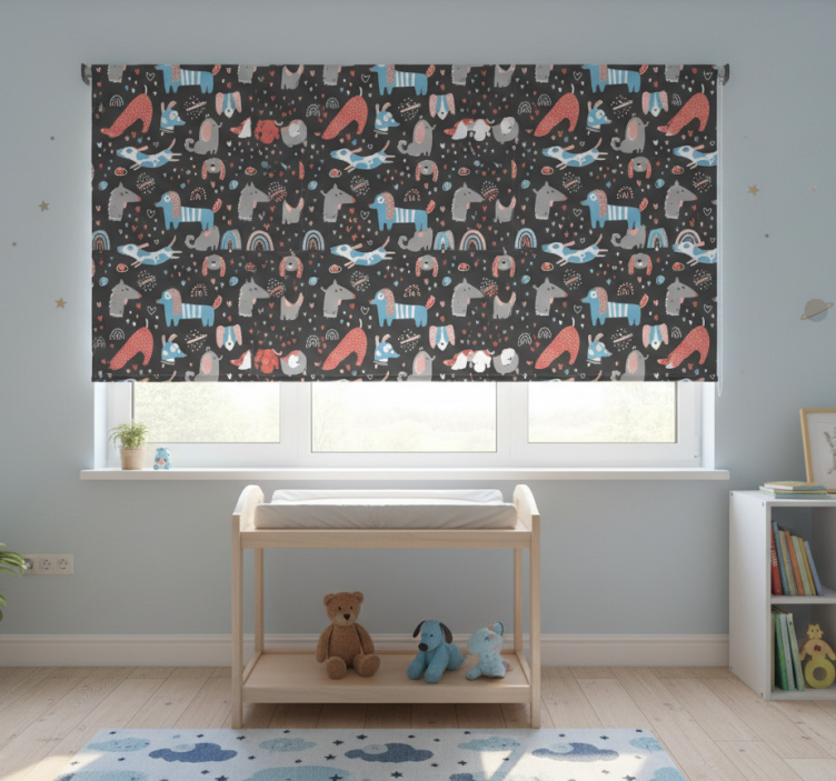 Reference: E6905The Blind children adorable dog illustrations feature a whimsical design that captures the hearts of young ones with its vibrant colors and playful imagery. The artwork showcases delightful dog illustrations that evoke joy and warmth, making it a perfect addition to any child's room. With easy assembly in two clicks, this roller blind is designed for practicality, allowing for quick cleaning and hassle-free disassembly. It also effectively protects the room from direct sunlight while providing privacy and regulating room temperature, ensuring a comfortable and secure environment.