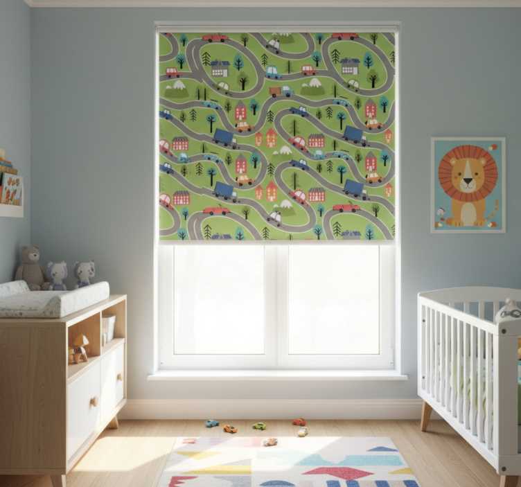 The Blind children on a vibrant street with racing cars blind children roller blind is more than just a window treatment; it's an inspiration for your decor! This enchanting design invites warmth and positivity into your home, making it an ideal choice for children's rooms, play areas, or any space that could benefit from a cheerful aesthetic. The playful depiction motivates creativity and imagination, turning everyday moments into a celebration of joy!