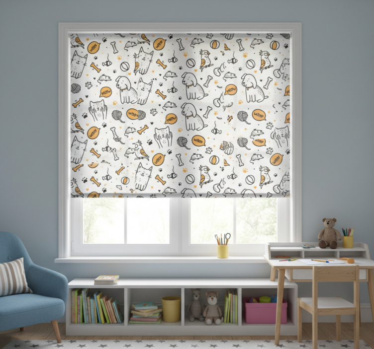 The Blind children pets cats and dogs doodle style blind children roller blind is more than just a window covering; it’s a source of inspiration and happiness! Adorning your space with this playful design encourages imagination and joy, making it ideal for nurseries, playrooms, or any area where children spend time. The cheerful imagery of pets brings warmth and a sense of comfort, inviting smiles and uplifting spirits in any setting!
