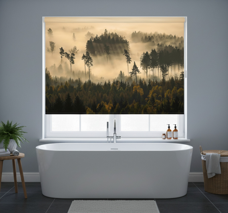 Reference: E6107Transform your living space with the Ethereal morning mist tree blind, designed to evoke the serene beauty of a misty morning. This stunning roller blind features a captivating graphic design that showcases ethereal tree silhouettes gently emerging from a soft, dreamy backdrop. Its easy assembly and disassembly in just two clicks make it a breeze to install and clean, while also offering protection from direct sunlight and enhanced privacy.