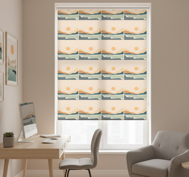 The Home office blind abstract sunset mountains home office blind is an exceptional choice for elevating your decor! With its vibrant colors and captivating design, it transforms any home office into a calming retreat. Imagine working surrounded by the warm hues of a sunset, inspiring creativity and focus. This blind not only adds beauty to your space but also offers practical benefits like light control and privacy, making it an essential addition to your home office!