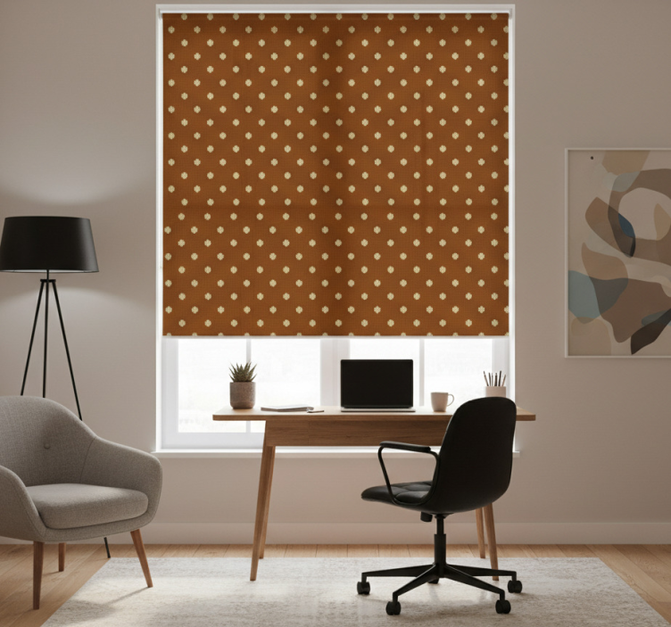 The Home office blind in brown cross pattern home office blind is not just a window covering; it is a statement piece that transforms your workspace into a chic sanctuary. Its rich brown hue and unique cross pattern effortlessly blend with various interior styles, inspiring creativity and focus. Elevate your home office ambiance with a touch of sophistication that makes working from home a delightful experience!