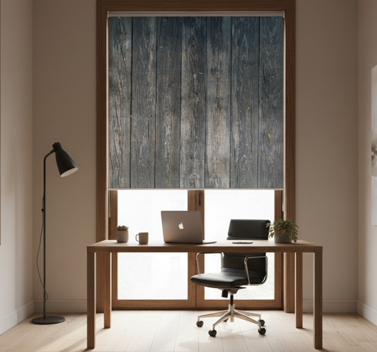 The Home office blind in gray broken rustic pattern home office blind transforms your work area into an inspiring haven. Its captivating design not only enhances the aesthetic appeal of your home office but also provides an atmosphere conducive to productivity. Imagine a workspace where the natural light is perfectly filtered, creating a warm and inviting environment. This roller blind is more than just a window covering; it’s a statement piece that uplifts your home office interior!