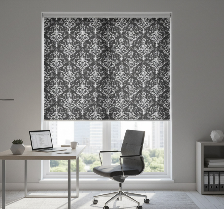 Elevate your interior aesthetics with the Home office blind with baroque botanical design home office blind. This exquisite blind not only enhances your workspace but also inspires creativity and focus. Its remarkable design serves as a beautiful backdrop, making your office feel more inviting and stylish. Perfect for those who appreciate artistry in everyday life, this blind seamlessly combines form and function!