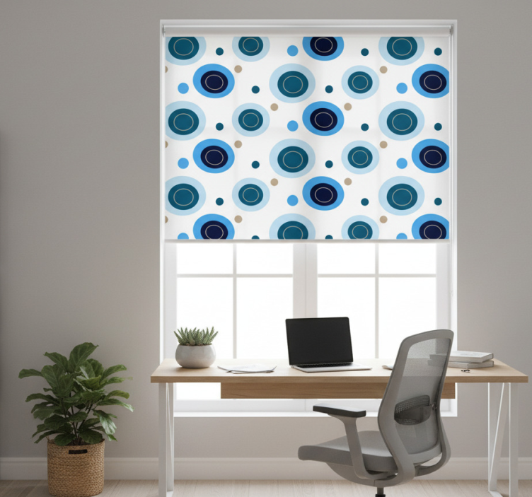 The Home office blind with blue floral dot pattern home office blind is the perfect choice for those looking to elevate their home office decor. Its charming design creates a warm and inviting atmosphere, making your workspace a delightful place to be. Imagine working in an environment that inspires creativity and focus, all thanks to this beautifully patterned roller blind. It's more than just a window covering; it's a statement piece that reflects your personal style!