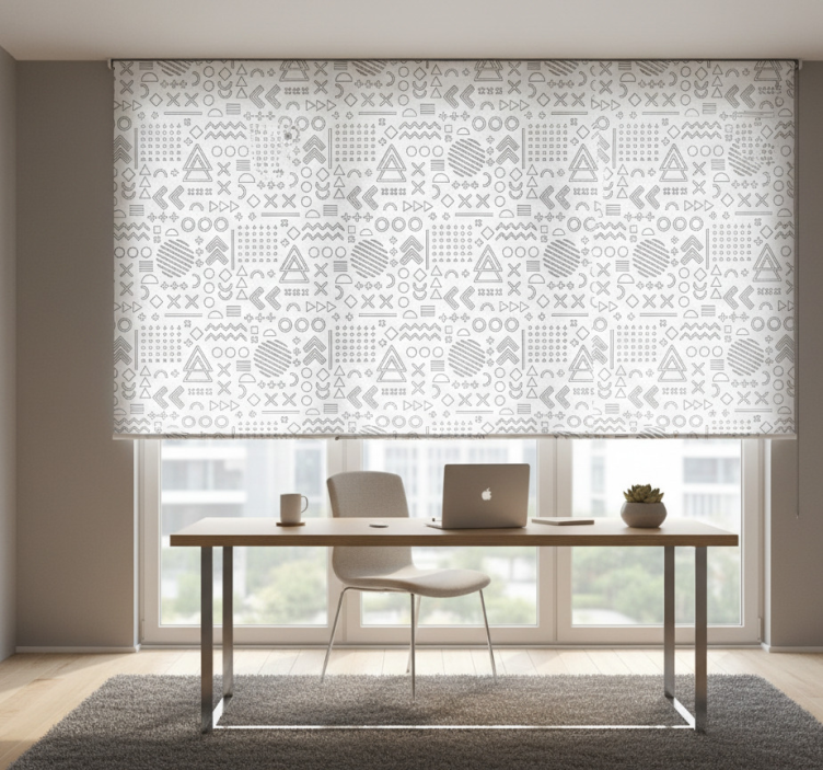 The Home office blind with geometric sketches pattern home office blind is a perfect choice for anyone looking to add a touch of elegance to their workspace. Its contemporary design invigorates any room, inspiring creativity and productivity. The geometric patterns bring a fresh vibe that transforms your home office into a stylish haven, making it a delightful place to work!