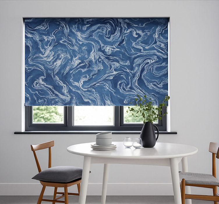 Reference: E5867Transform your space with our Indigo Marble Abstract blind teens, a stunning blend of artistic elegance and functionality. This design features rich indigo hues swirling in an abstract marble pattern, making it a perfect addition to any modern or contemporary room. The roller blind offers easy assembly in just two clicks and is simple to clean, ensuring your home remains stylish and pristine.