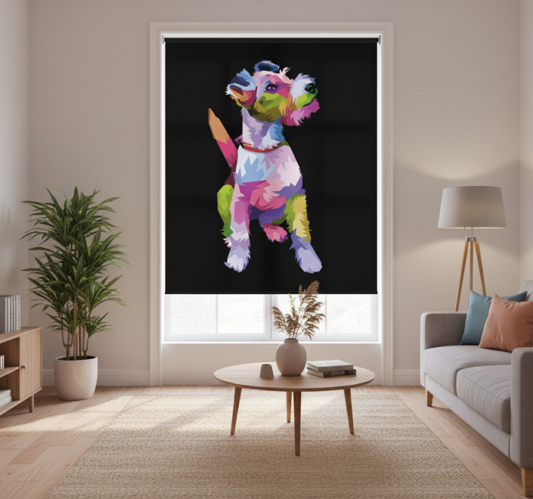 The Living room blind geometric fox terrier design living room blind is not just a window covering; it’s a statement piece that elevates your home’s aesthetic! Imagine the joy of transforming your living room into a vibrant sanctuary where style meets comfort. This roller blind offers a perfect balance of modern design and playful art, making it an ideal choice for anyone looking to enhance their decor and express their personality!