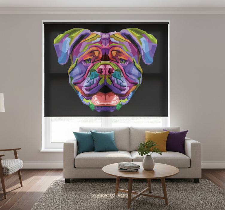 Living room blind modern colorful dogs