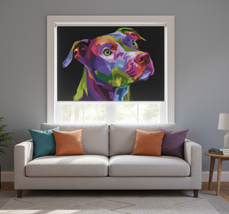 The Living room blind multicolor modern pitbull dogs living room blind is not just a window covering; it's a statement piece that inspires joy and creativity! Imagine the delightful ambiance it brings to your living room, enhancing the overall aesthetic while providing essential privacy. This roller blind reflects your personality and love for dogs, creating a warm and inviting atmosphere!