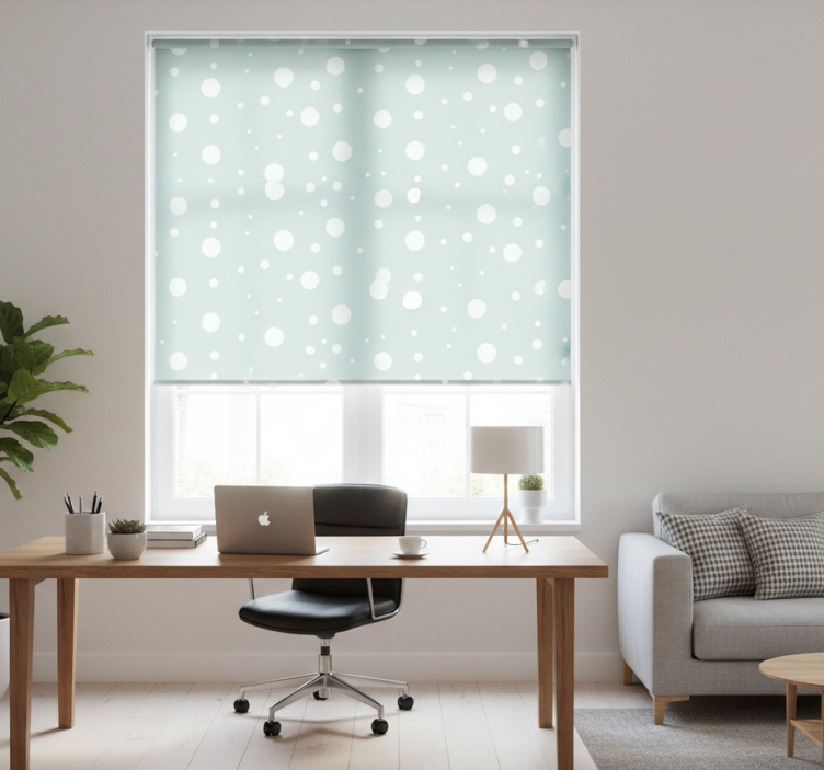 Reference: E6243Transform your workspace with our Mint fantasy home office blind, a stunning blend of style and functionality! This roller blind showcases an enchanting mint design that effortlessly enhances the ambiance of your home office. With its easy assembly in just two clicks, this blind offers a hassle-free experience. It is also easy to clean and disassemble, ensuring your window and surroundings stay spotless. Protect your space from direct sunlight while maintaining your privacy, and enjoy the added benefit of regulating room temperature. This versatile blind not only improves your room's décor but also provides security, allowing you to see outside without being seen. Plus, you can customize the measurements to fit your window perfectly! Choose from three different textures for the ideal balance of light and privacy.