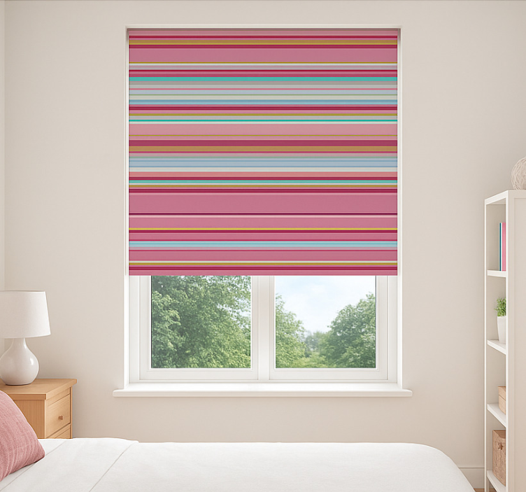 Reference: E5856Transform your space with the stunning Pink Stripe Pattern blind teens. Designed with a vibrant pink stripe pattern, this roller blind combines style and functionality. Its easy assembly allows you to put it up in just two clicks, while the easy-to-clean materials ensure that your decor remains fresh and delightful. With the ability to regulate room temperature, provide privacy, and enhance your interior design, this blind is a must-have!