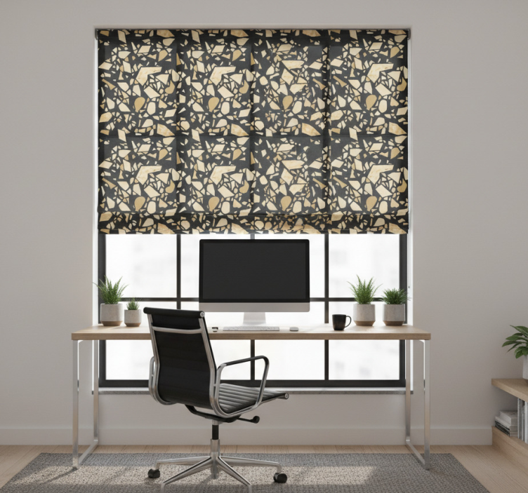 The Roller blind office terrazzo style black gold roller blind office is more than just a window covering; it is a statement piece that elevates your interior decor. Its unique design adds a touch of sophistication and elegance to any office or living space. Imagine a workspace where inspiration flows freely, illuminated by the perfect amount of natural light filtered through this stylish roller blind. It’s a wonderful way to harmonize functionality and beauty!
