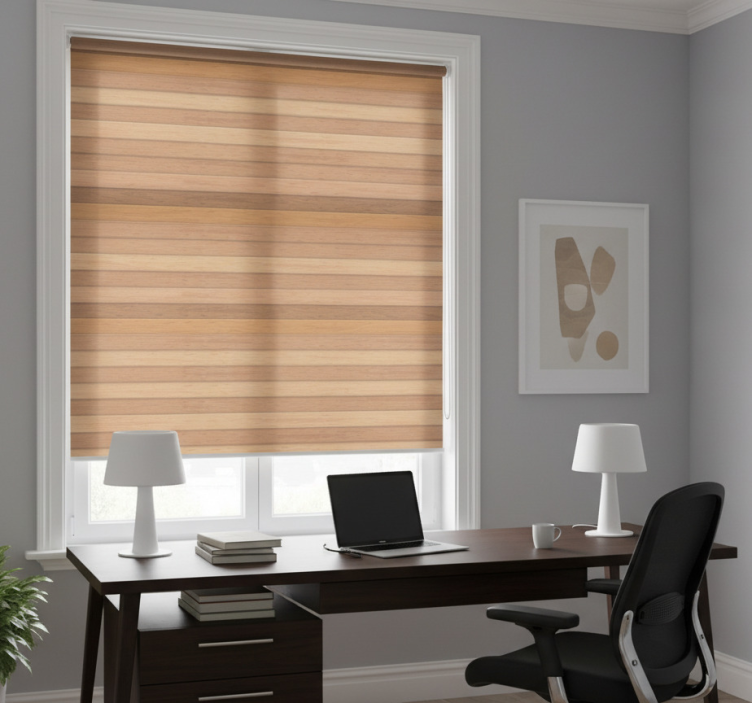 Roller blind office with elegant rustic wood planks