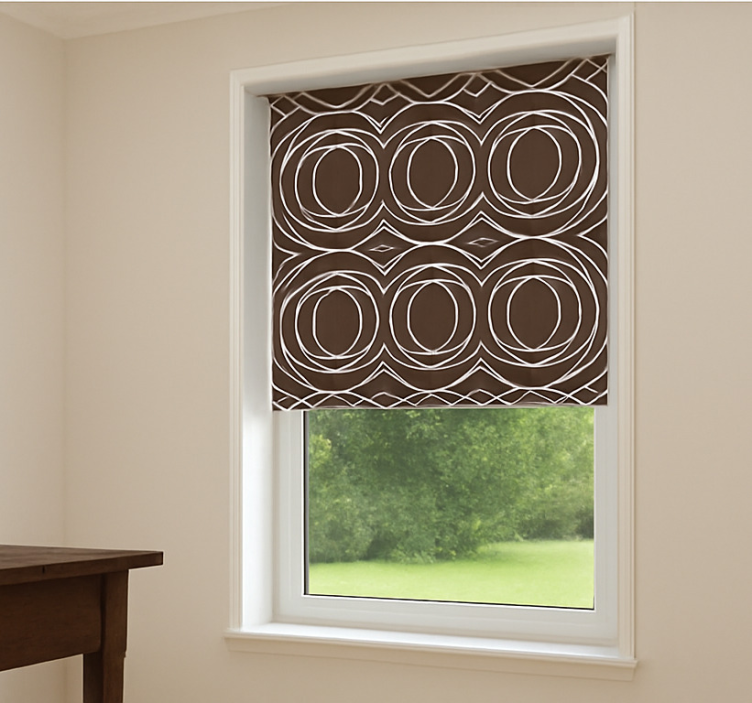 Reference: E6086Introducing our Scandinavian blind modern intertwining circles, a stunning design that brings contemporary elegance to any space. This roller blind features a beautiful intertwining circle pattern that adds a touch of sophistication while seamlessly blending functionality with style. With its easy assembly in just two clicks, effortless cleaning, and the ability to regulate room temperature, this roller blind is not just a decorative element but also a practical solution for your home.