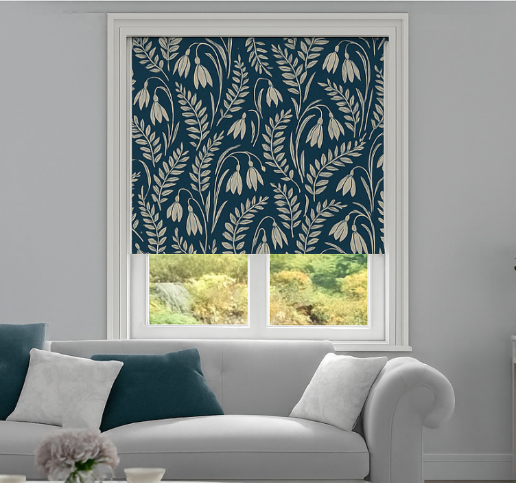 Reference: E6078Introducing our stunning Scandinavian blind navy beige snowdrop flowers, a perfect blend of elegance and functionality! This beautiful design features delicate snowdrop flowers that dance across a navy and beige backdrop, bringing a touch of nature indoors. With easy assembly in just 2 clicks, this roller blind not only enhances your decor but also offers practical benefits like protection from direct sunlight, privacy when lowered, and temperature regulation. The 100% customisable measurements ensure a perfect fit for any window!