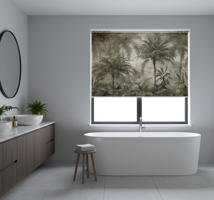 Reference: E6109Transform your living space with our Tree blind minimalist palm forest roller blind! This stunning design features a serene palm forest motif, creating a tranquil atmosphere in any room. The graphics blend minimalism with nature, giving your home a chic yet calming aesthetic. With easy assembly in just two clicks, this roller blind is not only visually appealing but also practical. It is designed to protect your room from direct sunlight while providing privacy when lowered, allowing you to enjoy your space comfortably.