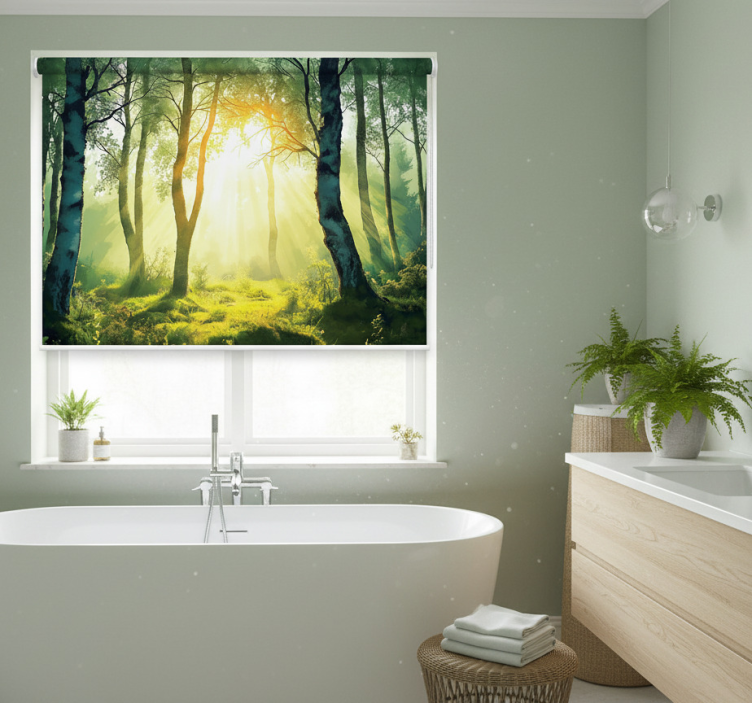 Reference: E6156Introducing our stunning Tree blind sunlit birch mural, a captivating design that beautifully blends the essence of nature with modern elegance. This mural features a serene birch tree scene bathed in gentle sunlight, creating a tranquil atmosphere in any room. With its easy assembly in just two clicks, easy cleaning, and customizable measurements, this product is perfect for those who desire a stylish yet functional addition to their home decor.