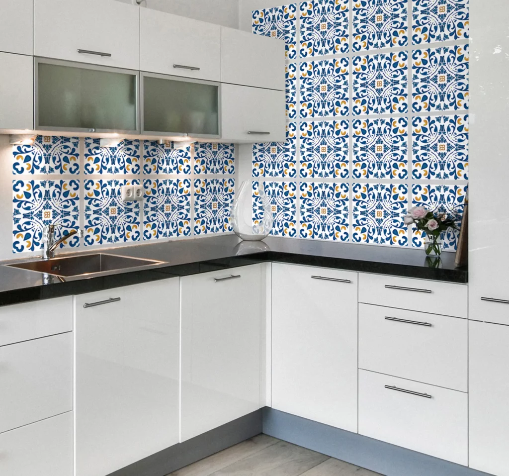 Applying wall sticker tiles kitchen or sticker tile wall is simple. Measure your tiles, cut the stickers to size, peel off the backing, and carefully position them. Smooth out air bubbles with a soft cloth or squeegee. At Tenstickers, we provide clear instructions for stress-free application.