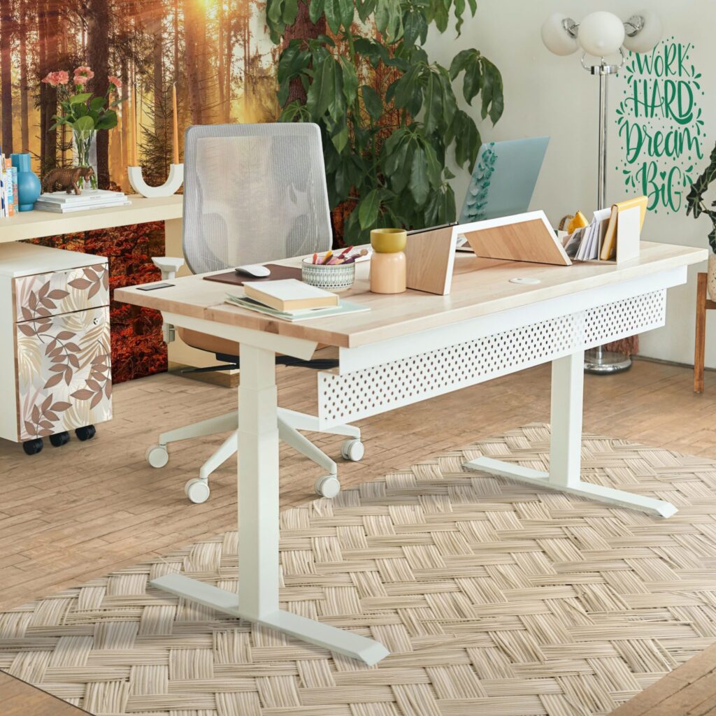 Decorate your study or office with recreations of natural textures like this rattan pattern rug