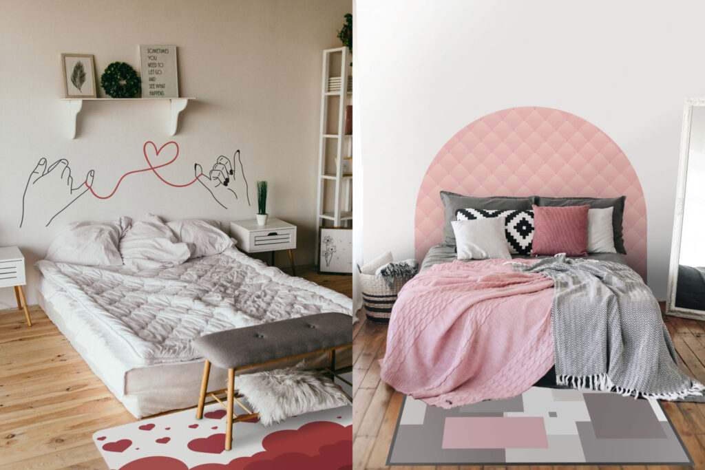 In the room where calmness and relaxation reign, plain vinyl rugs with neutral or earth-tone patterns, and imitation of natural fibers are the best choice. You can also opt for romantic designs or a combination of neutral tones with pastel colors based on Nordic designs perfect to decorate your bedroom.