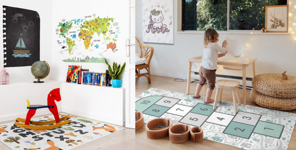 For children’s bedrooms, we recommend looking for colorful but functional rugs, such as alphabet rugs for the little ones to learn the letters or a hopscotch rug for them to have fun while learning numbers.