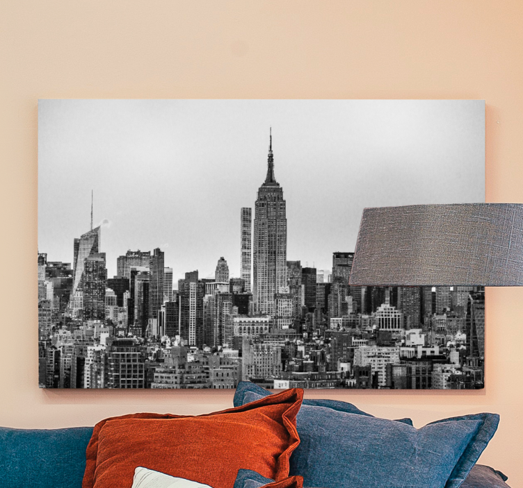 Experience the vibrant energy of the Big Apple with our Cityscape wall art New York City silhouette. This stunning piece features a dramatic skyline dominated by iconic skyscrapers, masterfully rendered in a striking greyscale. The intricate depiction of buildings encapsulates the essence of urban life, bringing a sense of sophistication and style to any space.