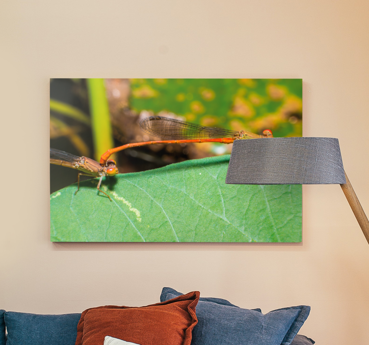 Immerse yourself in the enchanting world of nature with our Dragonfly canvas pair of dragonflies. This stunning design features intricate photography showcasing the delicate beauty of dragonflies amidst lush leaves and vibrant greens. The close-up perspective captures the essence of these incredible insects, bringing the tranquility of the outdoors right into your home. It's a perfect homage to the wonders of nature!