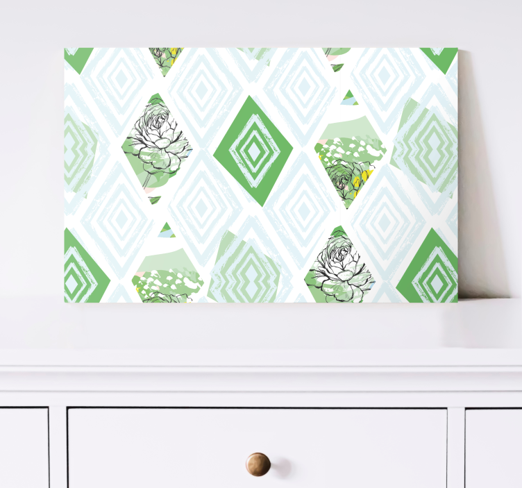 Introducing our stunning Flowers canvas with geometric succulent design, where nature meets abstract artistry! This captivating piece features an arrangement of green succulents and flowers, beautifully intertwined in geometric shapes, including diamond and rhombus forms. The design presents an enchanting visual experience that brings the essence of nature indoors, making it a perfect addition to any space!