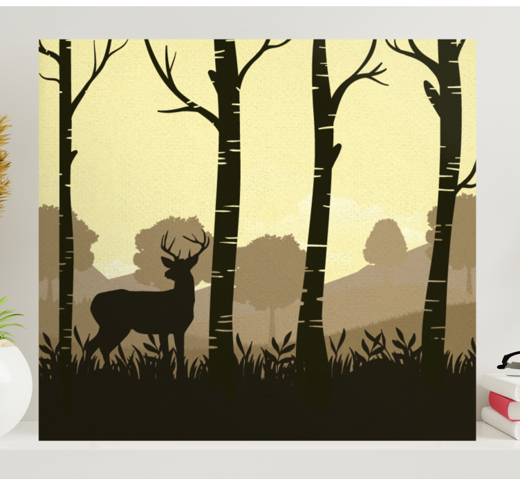 Discover the beauty of nature with our Stag canvas silhouetted stag among trees. This enchanting design captures a majestic stag standing gracefully among a backdrop of trees, grass, and lush foliage. The stunning silhouette invites you to immerse yourself in the serene scenery of wildlife and the forest, bringing a touch of the great outdoors into your home. Perfect for nature lovers, this artwork evokes a sense of peace and tranquility, making it an ideal choice for any living space!