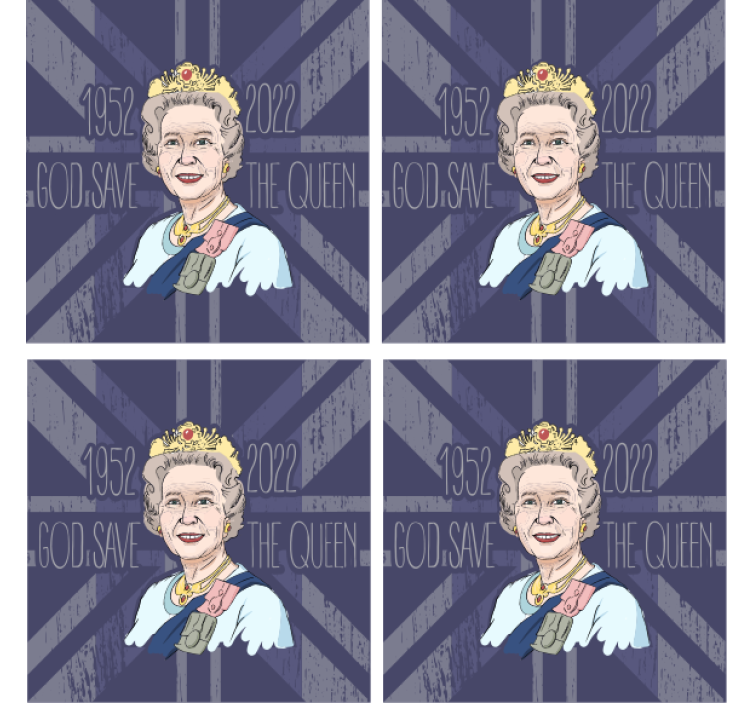 Set of to enjoy drinks on table in honor of the queen's reign and platinum jubilee marking. Its a blue background design with grungy and distressed texture, it flags the union jack and also the drawing of the queen, caption the platinum jubilee year and also the UK national anthem. The product is of quality, highly durable and resistant. It is made to a standard size and available in different pack options to select from. Perfect for bar, restaurant, etc. Made with the best of material on the market which make it able to withstand extreme weather and heat.