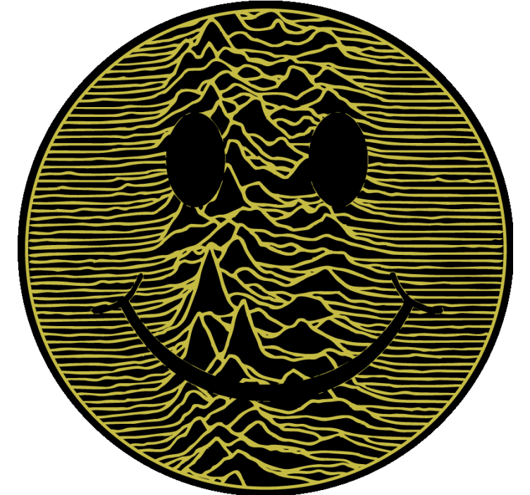 Pulsar smiley face vintage coaster - Set of round shape drink coaster with illustrative design depicting rhyme of pulsar wave, yellow streams of wave over black background. Its displays minimalist seamless lines that runs from one end to the other, on the mid form broken lines that creates abstract mountains, an interesting piece for any science enthusiast and all the brilliant computer and electronic geeks. The pulsar wave smiley drink coaster is made to a standard size and in different pack options to select from, easy to maintain, durable, does not fade and highly resistant.
