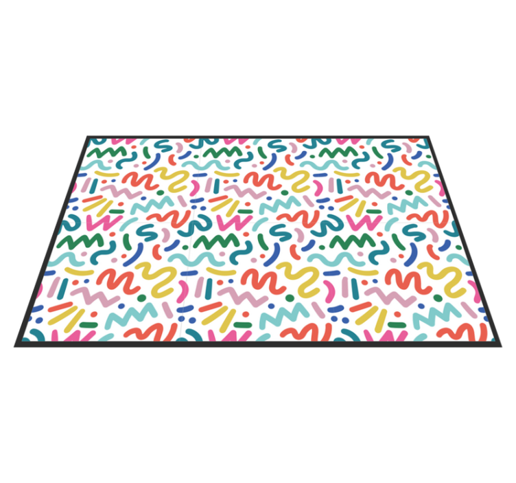 Abstract coloured shapes modern placemats - Colorful 80s retro seamless abstract design containing squiggle-like, swirly brush strokes on white background. Its a rectangular shape placemat with a black outline around the edges. This design imitates a confetti, Memphis abstract style and would add lovely touch on a table, it is suitable for home use, restaurant, bar, etc. It is easy to maintain, you can wipe the clean with damp cloth when it is dirty and it retains back it original look. The abstract squiggle pattern placemat is made with a standard sizes and available in different pack options for purchase.