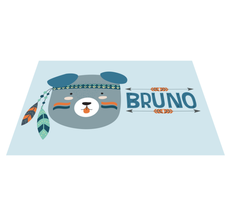 Reference: M4946The vibrant design features a bear's face adorned with feathers, capturing a playful and friendly character. It includes a customizable name, making it ideal for children’s items. The background complements the colorful elements, creating an engaging visual appeal.