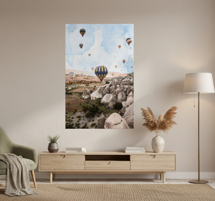 To enjoy your Cappadocia air balloons city poster, we recommend using double-sided adhesive tape for a clean and secure application. Simply place strips on the back, hold for about 10 seconds, and enjoy the transformation of your space! Alternatively, thumbtacks or reusable blu-tack are great options for a more casual look.