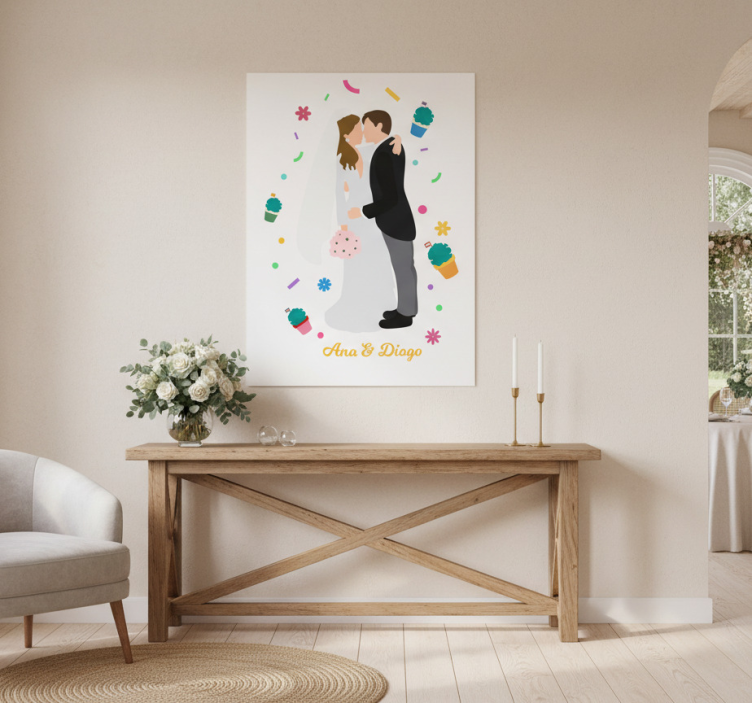 Reference: G1086Introducing our stunning Event poster for "santo antónio" weddings, designed to capture the essence of love and celebration! This beautifully crafted poster showcases a semi-matt finish without reflections, ensuring high colour intensity that will brighten any space. Printed on quality 180g/m2 paper, it’s ideal for framing or displaying as part of your wedding decor. Each detail has been thoughtfully designed to reflect the joyous spirit of Santo António weddings.