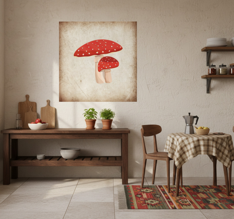 Reference: G610Introducing our stunning Kitchen poster amanita mushroom illustration, a captivating piece of art that beautifully combines vibrant colors with a whimsical design. This enchanting poster showcases intricate details of the amanita mushroom, making it a perfect centerpiece for your kitchen decor. Printed on high-quality 180g/m2 paper, it features a semi-matt finish that minimizes reflections while enhancing the high color intensity of the artwork.