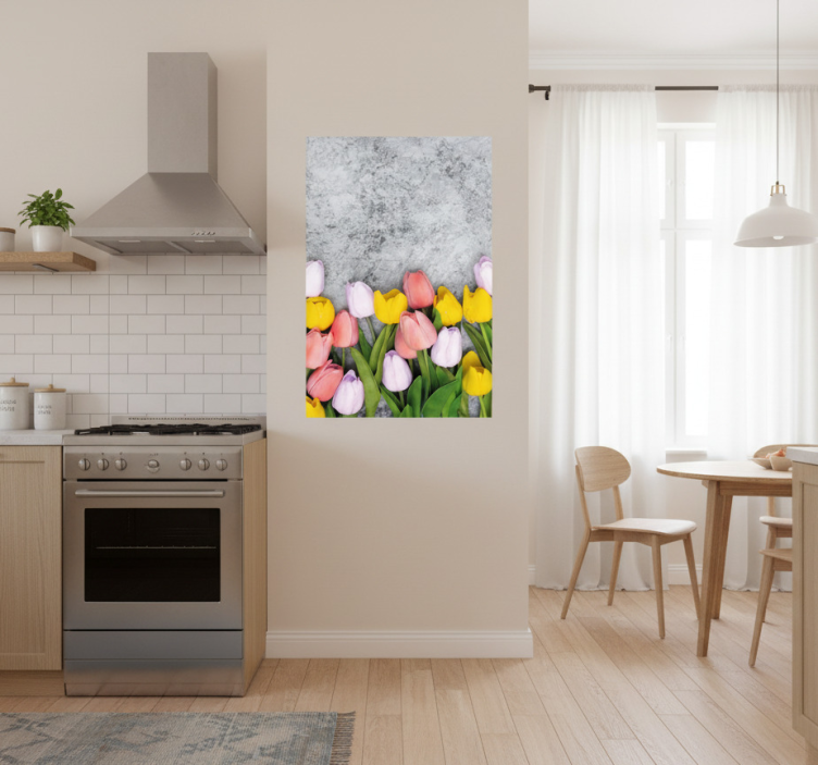 Transform your kitchen into a haven of style and inspiration with our Kitchen poster featuring similar tulip flowers kitchen poster. This exquisite piece of art not only serves as a striking focal point but also invites warmth and positivity into your home. Imagine cooking your favorite meals surrounded by the beauty of tulips, igniting your creativity while you prepare delicious dishes. Let this poster inspire you daily, turning mundane moments into joyful experiences!