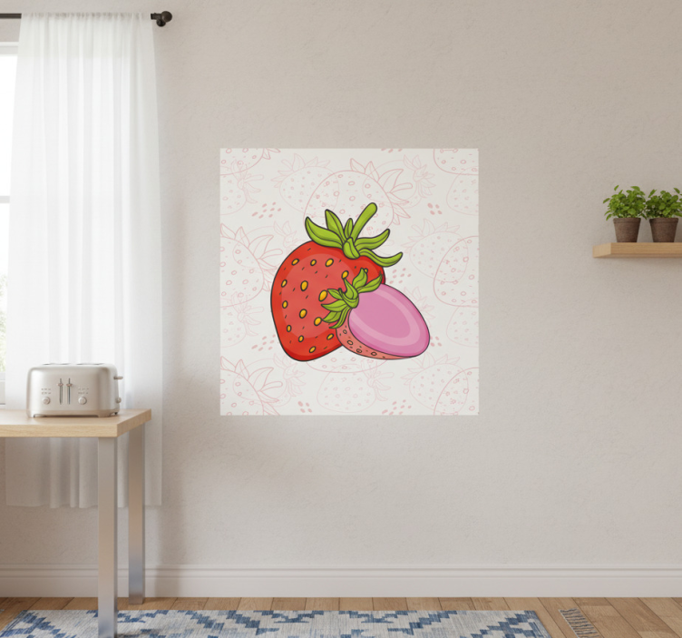 Placing the Kitchen poster seamless red and pink strawberries kitchen poster art is simple and fun! The best option is to use double-sided adhesive tape on the back of the poster for a clean look. Alternatively, you can frame it for a more polished appearance or use thumbtacks and reusable blu-tack for a casual vibe. Just stick the strips to the back and hold firmly for 10 seconds to ensure a secure fit!
