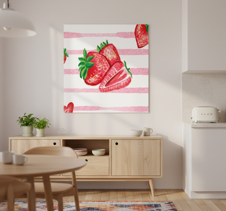 Reference: G575Introducing our stunning Kitchen poster seamless strawberries on striped background, a perfect blend of vibrant design and elegance! This delightful poster features fresh strawberries on a chic striped background, bringing a splash of color and a touch of whimsy to your kitchen decor. With a semi-matt finish that eliminates reflections and a high color intensity, this poster is printed on premium 180g/m2 paper, ensuring it stands out beautifully in any setting!