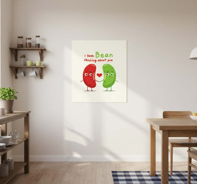 To display your Kitchen poster with a funny quote about beans kitchen poster art, consider using double-sided adhesive tape for a seamless look. Simply stick the tape to the back of the poster and hold each strip firmly for 10 seconds. Alternatively, you can frame it or use thumbtacks or reusable blu-tack for easy application. Get creative and make this charming piece a focal point in your kitchen!