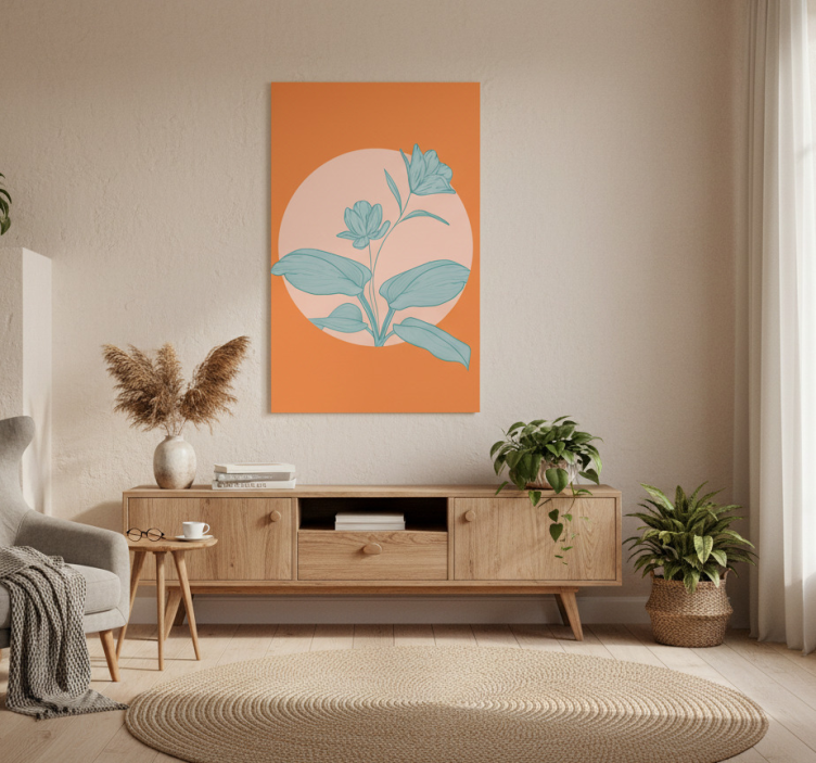 This Living room poster blue flowers on orange shapes living room poster is the perfect way to uplift your decor! Its vibrant colors and artistic design bring life to your walls, inspiring joy and creativity. Whether you're aiming for a cozy atmosphere or a bright and lively space, this poster serves as a beautiful focal point that captures attention and sparks conversation!