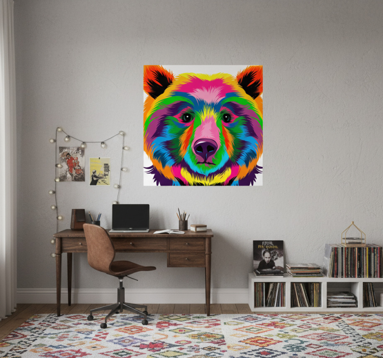 Reference: G787Introducing our stunning Living room poster colorful bear art print, a vibrant and captivating piece that brings joy and warmth to any space! This beautifully designed artwork features a colorful bear, embodying a playful spirit with high color intensity that is sure to catch the eye. Printed on high-quality 180g/m2 paper with a semi-matt finish, it ensures that your living area remains bright and cheerful without any reflections.