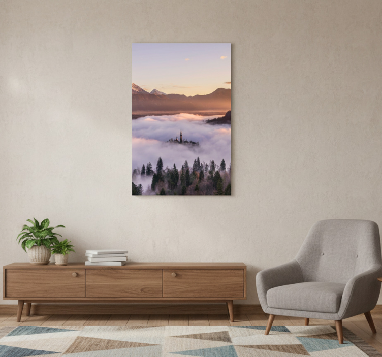 Elevate your home decor with the Living room poster foggy castle in poland living room poster. This exquisite artwork serves as a daily inspiration, transporting you to a tranquil realm with every glance. It invites warmth and imagination, turning your living space into a sanctuary that welcomes creativity and relaxation. Let this enchanting scene spark conversations and uplift your mood!