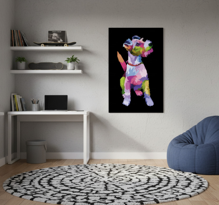 Reference: G775Introducing our stunning Living room poster geometric fox terrier art, a visual masterpiece that combines vibrant colors and intricate geometric patterns to create a striking focal point in your home. This unique artwork features a semi-matt finish without reflections, ensuring that the high color intensity stands out beautifully, while the 180g/m2 grammage makes it ideal for posters.