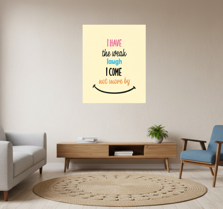 Reference: G830Introducing the Living room poster i have a weak laugh, a delightful piece that will instantly uplift your space! This poster features a stunning design with high colour intensity and a semi-matt finish that ensures no reflections distract from its charm. Made with a robust 180g/m2 grammage, this poster is perfect for any living area, offering both style and substance.