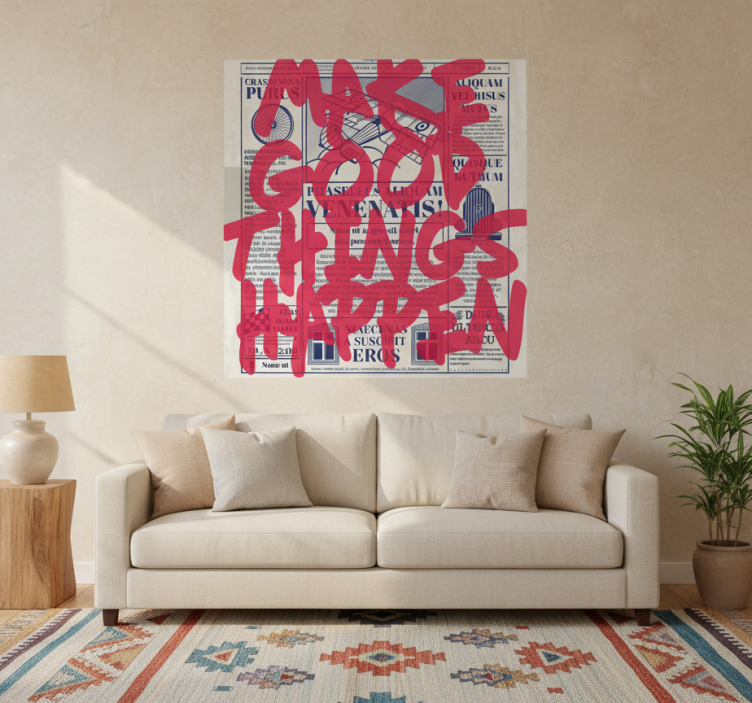 To ensure your Living room poster make good things happen retro design wall posters for living room looks perfect on your wall, we recommend using double-sided adhesive tape on the back. Simply stick the strips firmly for 10 seconds, or frame it using stronger adhesives for a more polished look. Alternatively, you can use thumbtacks or reusable blu-tack for easy application. Make your wall shine with this amazing poster!